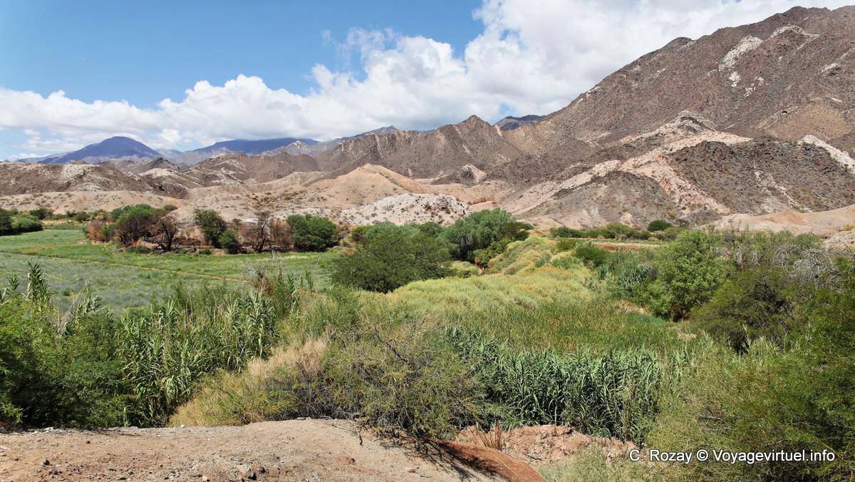 Environnement sauvage et cultivé vers Angostura, vallée Calchaquies, Ruta 40 - Argentine