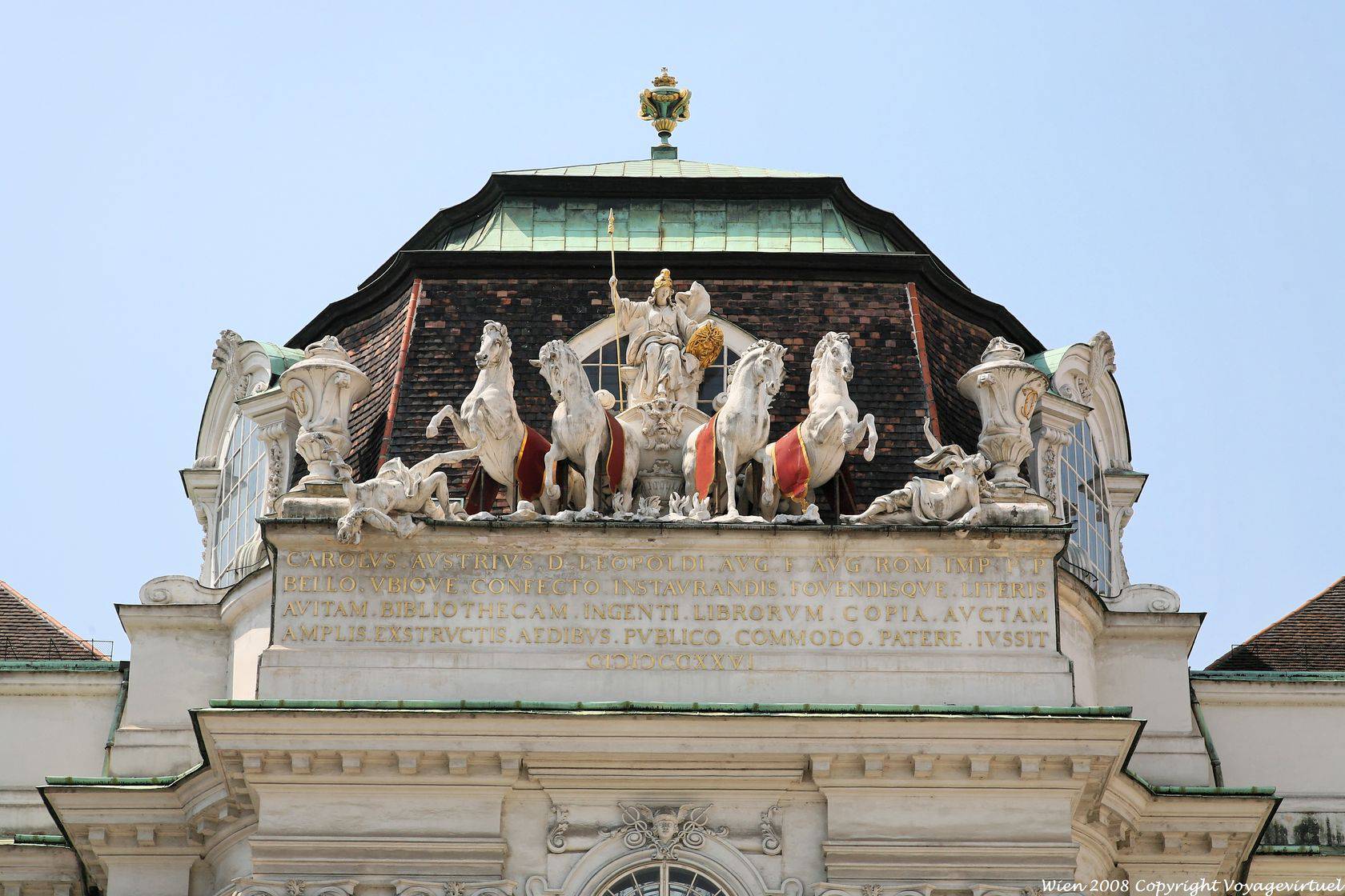 [Cliquez sur la photo pour la voir en grand format] Vienne - Autriche national bibliothek statue of pallas athene riding on a quadriga 6 wien-national-bibliothek-statu... - 13 / 20 (10 votes). Votre note =>Ecrivez un commentaire en cliquant ici. Votre texte sur cette image apparaitra ici.