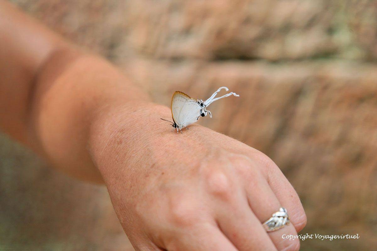 - Une histoire de papillon pas vraiment sauvage qui vient nous butiner au milieu des ruines de Ta Phrom. (Claude)