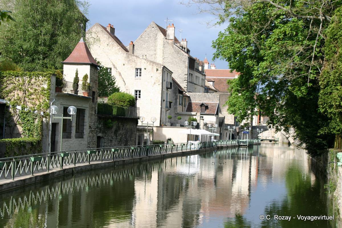 Promenade au bord de l'eau dans la vieille cité de Dole - France