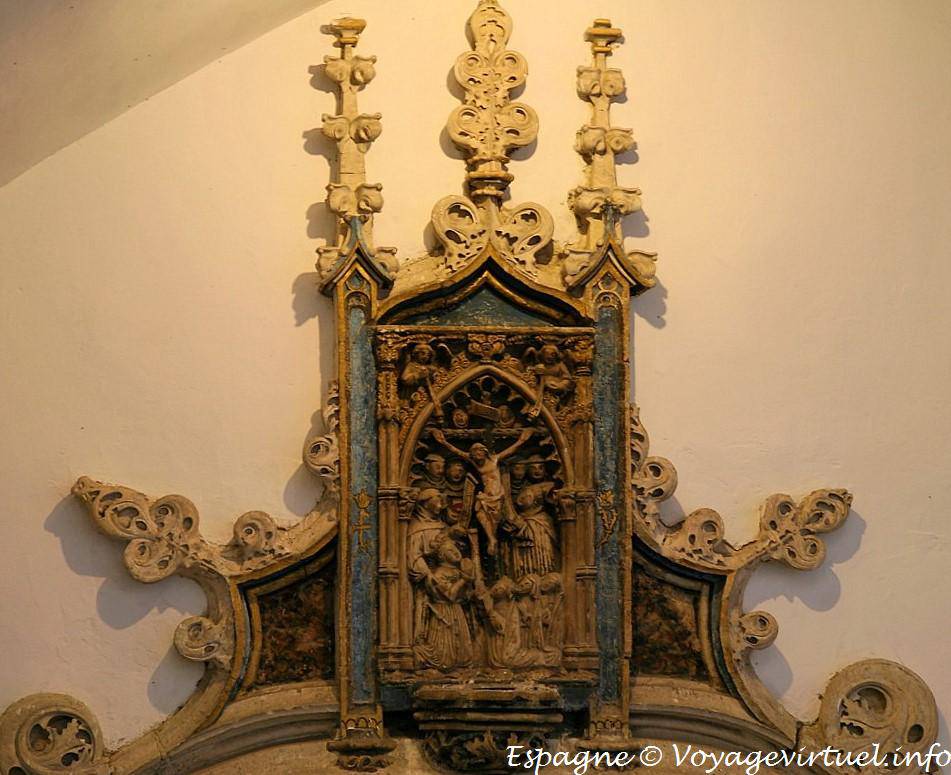 Polychrome en albâtre avec la reina Isabel en habit franciscain qui prie le Christ crucifié, en compagnie de ses trois filles, Monasterio San Juan de Los Reyes, Tolède - Espagne
