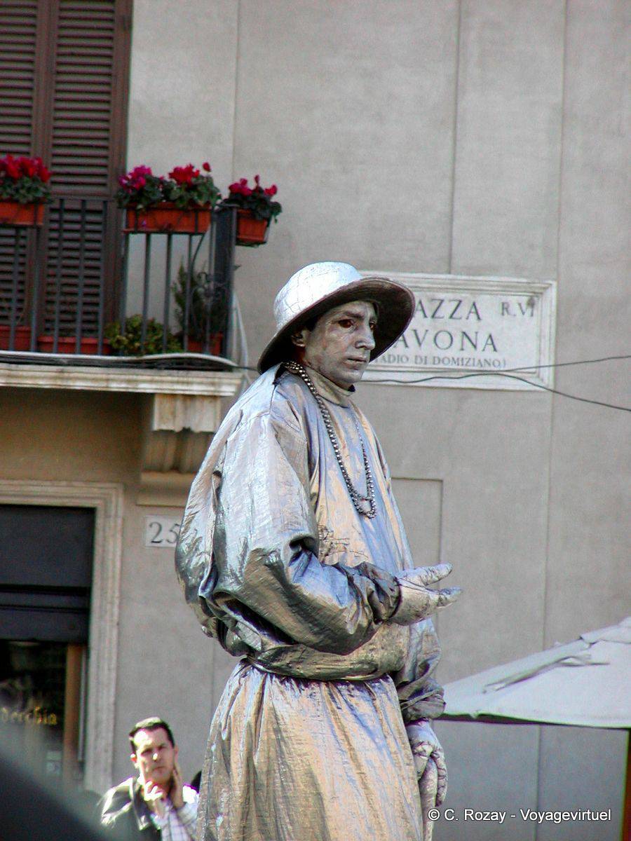 [Cliquez sur la photo pour la voir en grand format] Mime piazza Navona, Rome - Italie rome-177 - 14 / 20 (5 votes). Votre note =>Ecrivez un commentaire en cliquant ici. Votre texte sur cette image apparaitra ici.