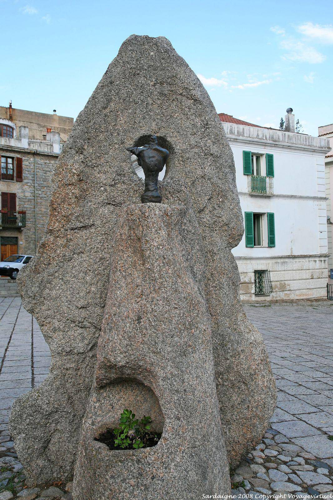 Bloc de granit pour abriter une statue en bronze, Nuoro, piazza Sebastiano Satta, sculpture Constantino Nivola - Sardaigne