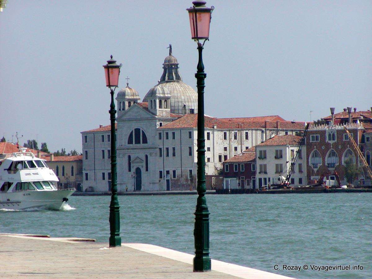 - Vue particulièrement réussie de Saint-Georges de Venise avec ces 2 lampadaires et le bateau qui arrive sur la gauche. (Edwige)